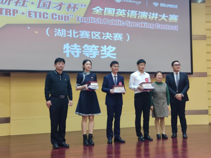 学生崔丹妮,在激烈的竞争中技压群雄,以综合评分第一名的优异成绩获得湖北赛区特等奖,并将代表湖北省参加12月在北京举行的“外研社·国才杯” 英语演讲大赛全国总决赛。
