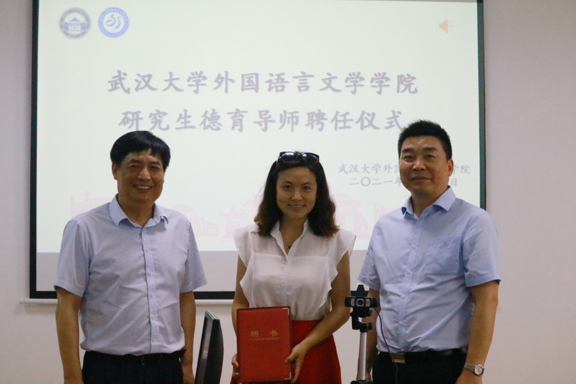 第三项,外语学院党委书记黄宏发、院长马萧为德育导师颁发聘书,并合影留念。