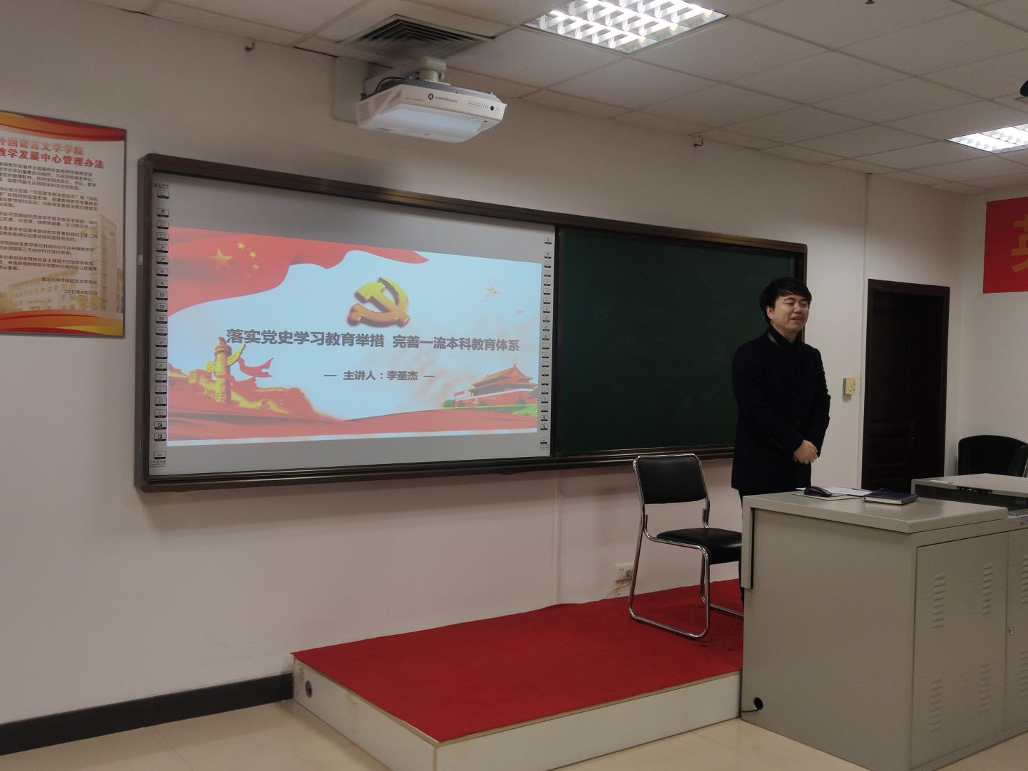 副院长李圣杰以《落实党史学习教育举措,完善一流本科教育体系》为题,就党史教育的重要性、必要性和推进举措,进一步阐释如何更好地推进新文科建设,明确使命担当,为外语学院教学指导委员会成员和部分学生党员代表上了一堂意义深刻的党课。