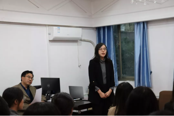 吴钟明老师作为新一届口译队总教练,讲述了口译队的历史传承与发展思路。口译队过去的辉煌,离不开学校、学院领导和老师们的支持。他表示将全力支持罗菁老师的工作,并把积累的经验、资料、资源投入到口译队的建设之中,把口译队推向新的高度。