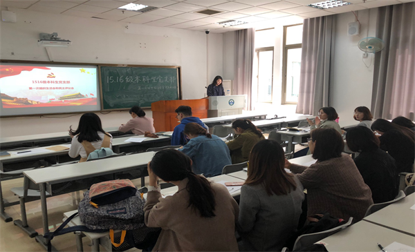 1516级本科生党支部于外院14教室召开了支部第一次组织生活会和民主评议会。外语学院党委副书记孙燕书记和来自15级的全体党员及预备党员出席本次会议。