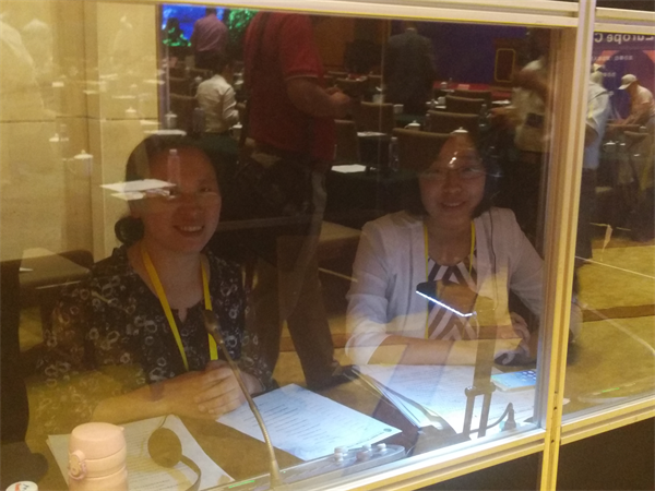 外语学院俄语系青年教师田园、张鸿雁在“互联互通专场论坛”中担任同声传译
