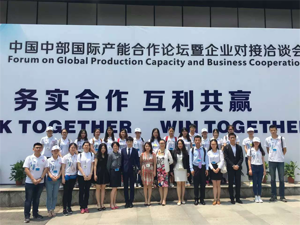 共派出了80名志愿者参与其中。其中70名志愿者来自外语学院英语和法语专业,参与了高端翻译组、外宾接待联络组、中央部委领导接待联络组、湖北省内企业联络组的工作。从前期准备到大会进行,无论是会场内外各个角落还是往返于车站与会议中心的路途,志愿者们全程参与其中,散发出青年人特有的正能量,展现着武大人的风采与活力。