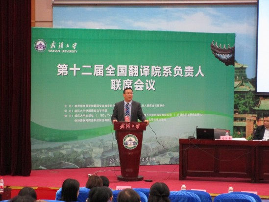 翻译本科专业建设的探索途径”大会发言,他从武大翻译专业的历史与现状、翻译专业的目标设置与质量评估、翻译团队建设与学科建设、学生的翻译实践与能力培养,以及如何培养德智体美的翻译人才等方面,提供了颇具特色的“武大模式”。北京第二外国语学院翻译学院、吉林华侨外国语学院分别结合各自的校情,向与会专家报告了其本科翻译专业的办学经验。以穆雷教授为首的“翻译专业八级考试项目研发组”介绍了该项测试的研究成果和可行性测试,准备2016年度向全国正式推出翻译专业八级考试。