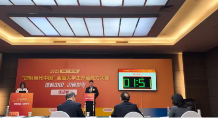 12月7日,2023“外研社·国才杯”“理解当代中国”全国大学生外语能力大赛(多语种组)国赛决赛在北京举办。在法语系苏昉、姜俊钦、范舒扬三位老师的指导下,23级硕士研究生李胜泽在比赛中取得优异成绩,荣获国赛银奖。