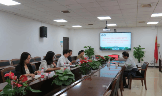 ,院长李圣杰、副院长张鸿彦、英文系主任张国庆、英文系教师田卓灵、国际交流部欧亚非办公室主任胡斯嘉出席交流活动。