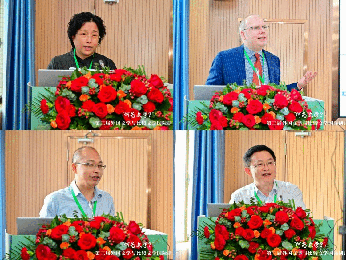 上海交通大学刘建军教授的发言《论文学的认识功能和预测功能》讨论了文学的认识功能和预测功能,就文学在人工智能时代的功能提出了创新性思考;浙江大学/杭州师范大学吴笛教授从《论司各特作品中的法律伦理思想》出发,探讨了瓦尔特·司各特作品中的法律伦理思想,为理解司各特作品的深层意义提供了新的视角;南开大学/南方科技大学王立新教授带来题为《古典学研究方法与古代东方文学——以希伯来文学为例》的主旨发言,以希伯来文学为例,探讨了古典学方法在古代东方文学研究中的应用;上海交通大学彭青龙教授在题为《中国式现代化与外国文学研究转向》的发言中,讨论了中国式现代化与外国文学研究的关系,以“中国式现代化与外国文学研究转向”为外国文学研究在中国的发展提供了新的思考。