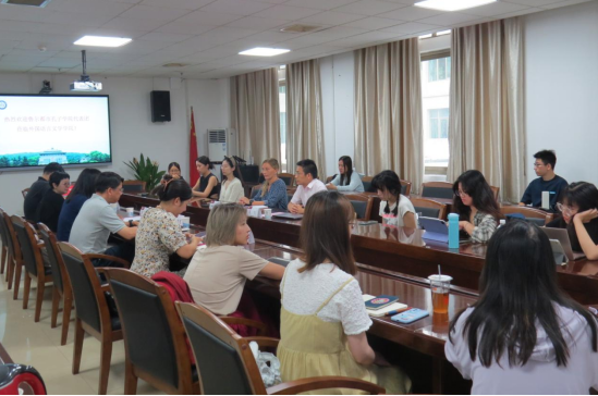 。学院副院长张鸿彦副教授,德文系主任徐琼星副教授,德文系刘靓副教授、副主任张申威老师,国际交流部欧亚非办公室项目官员席冰清老师,以及德文系、英文系、翻译系部分学生代表出席了会议。会议由德文系主任徐琼星副教授主持。
