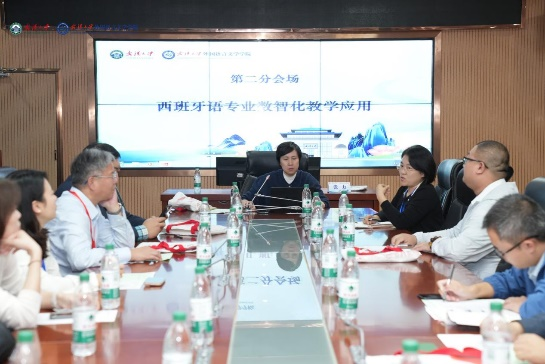 16日下午,与会代表分三个分会场,就西语教学中的热点问题:“西班牙语数智化教材研发”“西班牙语专业数智化教学应用”和“智化赋能西班牙语教师发展”进行了热烈讨论。随后,大会听取了三个小组的讨论情况汇报,第一分会场在四川外国语大学西方语言文化学院副院长温晓静全面介绍了当前数字化教材的现状,并展望了未来教材向“可视、可听、可互动”的数智化方向发展的无限可能,她的报告内容详实、视野开阔,引发了与会嘉宾的热烈讨论。第二分会场在国防科技大学外国语学院南欧教研室主任张力主持,专家们聚焦数智化时代背景下教育模式的革新和挑战,与会专家分享了丰富的实践经验和独到见解。第三分会场在外交学院外语系西班牙语教研室主任王晨颖与会专家讨论作结,数字化时代的到来对教师的知识结构更新提出了更高要求。