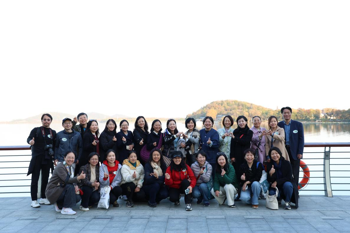 座谈会后,校友们在学院大门集体合影留念,齐声高呼“外院90,永远年轻”,用镜头定格下了这一温馨而美好的时刻。之后参观了樱顶、老外文楼、凌波门等充满青春记忆的地方。