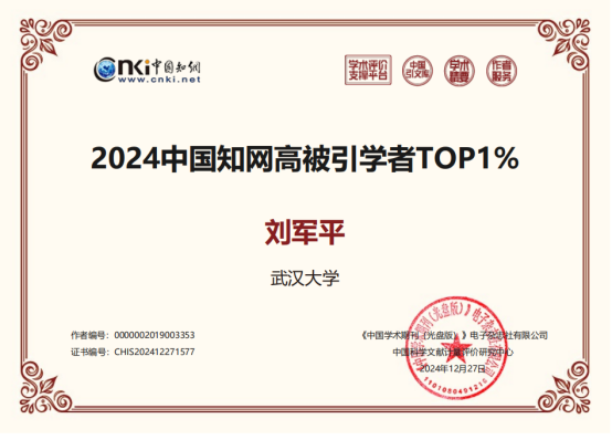 刘军平教授入选2024年外国语言文学中国知网高被引学者TOP1%。