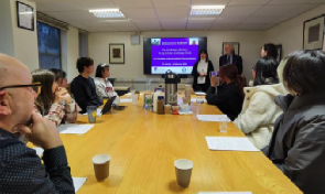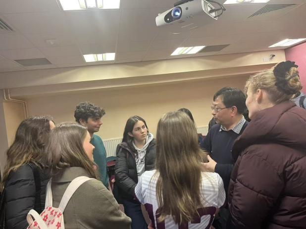 在杜伦大学,现代语言与文化学院院长Edward Welch教授与黄敏老师就AI冲击下的翻译教育进行了深入交流,分享了中西方高校的不同应对经验;Sergey Tuylenev教授就新时代的翻译理论与翻译研究为同学们提供了悉心的指导;黄金博士、司马麟先生为同学们举办“从本科到研究生:学术路径与选择”圆桌论坛,邀请杜伦大学翻译专业博士、硕士研究生与同学们面对面交流,从翻译实践与研究选题角度,帮助同学们做好学术和职业规划;考古系张然博士带领同学们参观东方博物馆,以中国文物译介为例,与同学们探讨中国文化国际传播的有效路径与方法;历史系Christ Courtney副教授以自己撰写《龙王之怒》为例,与同学们交流武汉历史研究与中国声音海外传播的经验。在利兹大学,中国译协海外专家Martin Ward教授,与同学们分享了自己翻译中国的经验和建议。在伦敦,国际组织资深译员马骋老师和张光波老师与同学们围坐畅谈,从国际组织翻译经历与趣闻轶事、同传中的译员配合和困境应对,到人工智能对翻译行业的冲击与挑战,再到译员如何保持行业不可替代的专业敏锐度等等,两位老师知无不言、言无不尽,为同学们解答了翻译专业学习与职业发展中的诸多困惑。