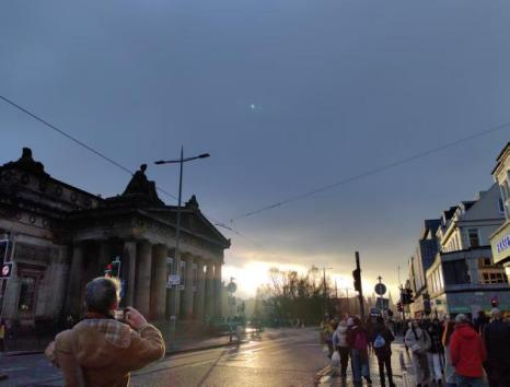 冬日的爱丁堡,藏着苏格兰独有的文化底蕴。层层叠叠的石砌建筑、带着中世纪印记的尖顶、街头悠扬的苏格兰风笛与小提琴演奏,让大家沉浸式感受苏格兰的文化特色。沿着皇家一英里缓步而行,磨圆的石砖承载着历史的印记,苏格兰格纹中藏着地域与家族的文化密码,蓝绿交织的配色勾勒出这片土地冷静而生机勃勃的文化特质。同学们在感受苏格兰文化的过程中,也学会从跨文化的视角观察文化的表达形式,理解不同文化背后的价值内核——这正是做好国际传播的重要基础。