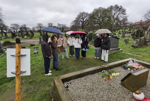 纽卡斯尔的北洋水师墓地之行,成为本次实践探知的重要节点。淅淅沥沥的风雨中,同学们站在墓地前,聆听戚勇强会长讲述北洋水师的历史,那些曾经在历史课本上寥寥数笔的文字,在真实的场景中变得鲜活而厚重。戚勇强会长还向大家介绍了北洋水师墓地的修缮与保护近况,让大家看到,越来越多的人正在以实际行动守护着这份民族记忆,而这份守护,也是国际传播的一部分。此次经历让大家深刻体会到,翻译与国际传播工作者肩负着让世界了解中国历史、中国故事的使命,而这份使命,需要建立在对民族历史的敬畏与认同之上。