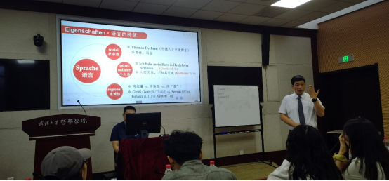张申威老师讲授《德语语言学导论》,采用产出导向法和BOPPPS教学模式,通过德语、汉语、英语三种语言中的生动实例讲授语言的六个特征,通过测试演练、即时问答、视频资料和学习通智慧课堂引导学生充分参与,启发学生归纳总结,教学闭环设计严谨流畅。