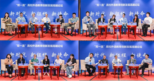下午的四场圆桌论坛分别围绕“外语教育与国际传播人才培养”“高质量发展与外语学科建设”“科技赋能外语智慧教学”和“‘四新’建设与外语专业创新发展”四个议题进行。