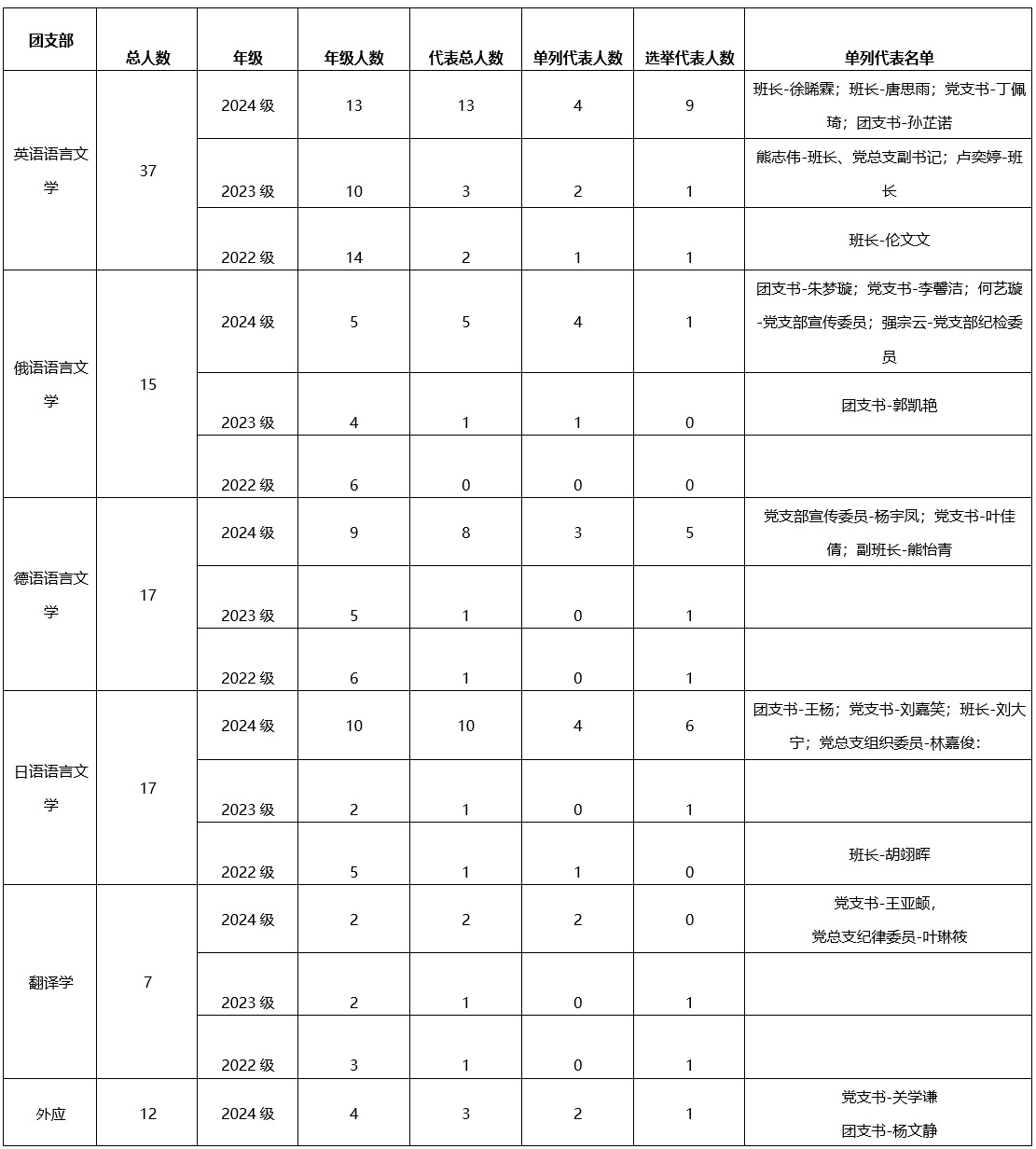 代表由单列代表和选举代表组成。单列代表包括班长、团支书、党支书、党总支成员以及校院两级学生会部长级以上干部等;选举代表经各团支部民主选举产生,以团支部为单位组成代表团。各代表团代表名单报大会筹备工作组资格审查组。