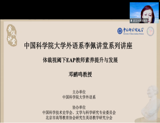轻小说 邓鹂鸣教授应中国科学院大学李佩讲堂特邀,于2021年7月13日作了题为“体裁视阈下EAP教师素养提升与发展”云端专题学术报告,受到参会的全国各地外语教师的一致好评。李佩讲堂由中国科学院大学组织筹办,先后近20名国内外语言学专家应邀作相关学术报告,针对当前我国应用语言学不同层面及学术用途英语教师发展的主要议题和新趋势展开探讨切磋,旨在有效推动新文科背景下我国应用语言学及学术用途英语教学研究与发展。
