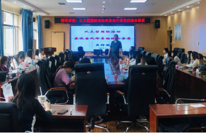 口译队的辉煌成就进行了介绍,激励同学们要有意识地从政治思想、专业知识、团队合作、组织纪律和应急处置等方面锻炼自己,并且积极配合学校与教师,不断磨砺自己各方面的学识与修养,早日成为一名能够胜任国际活动的优秀复合型译员。