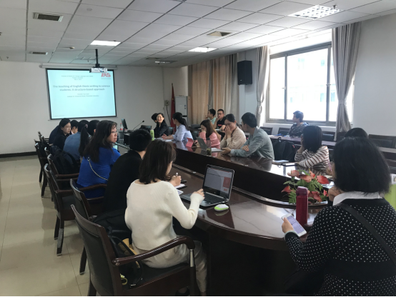 ,在3008会议室进行了主题为“The teaching of English thesis writing to science students: A structure-based approach”讲座。此次讲座由张妍岩教授主持,出席讲座的还有来自英文系的耿云冬老师、刘庆荣老师,大英部的多位老师以及轻小说