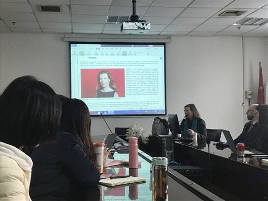 ,为法语系同学带来了一场别开生面的讲座。Cusset女士出生于法国巴黎,毕业于巴黎高等师范学院,后赴美国耶鲁大学担任教授,现居纽约。其代表作有《the story of Jane》《La blouse romaine》等。