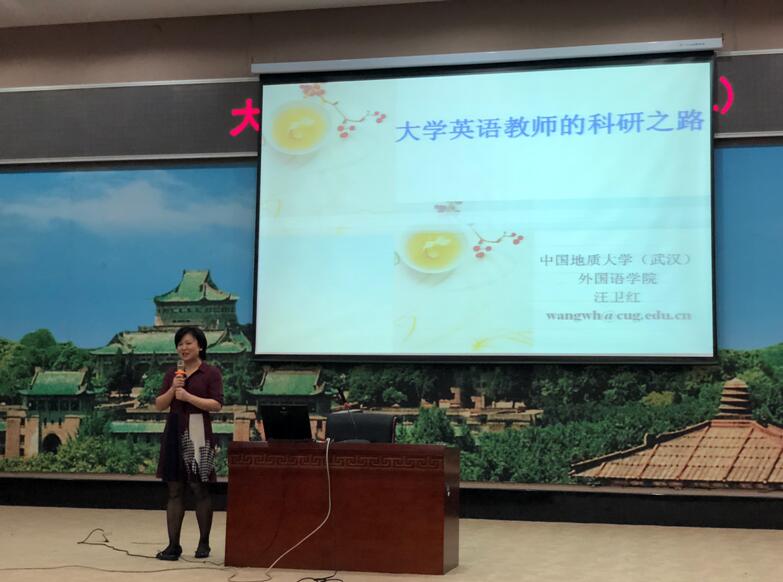 做了题为“大学英语教师的科研之路”的讲座,讲座由大学英语部主任程向莉副教授主持。王爱菊副院长、游长松副院长,大学英语部的全体教师和部分硕博士研究生参加了本次讲座。