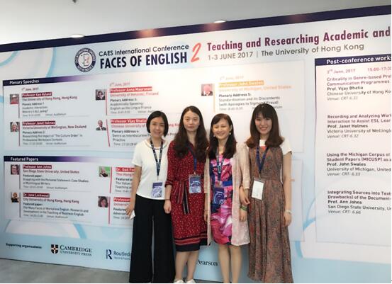 英文系邓鹂鸣教授带领刘庆荣、刘京、周韵三位博士研究生参加2017.6.1-3日由香港大学主办的Teaching and Research Academic and Professional English国际学术会议,此次会议为本领域最高规格的全球学术盛会,来自世界各地500多名学者参会,蜚声国际学界的大牌知名专家John Swales、Vijay Bhatia、Ken Hyland、John Flowerdew、Ann Johns、Janet Holmes等应邀出席做主旨报告;邓鹂鸣教授及其三位博士研究生分别就学术语篇中self-mention、lexical bundles、citation behavior现象作分场研究报告,所作报告得到了知名专家John Swales、Vijay Bhatia、Ken Hyland、John Flowerdew、Ann Johns及有关参会学者甚高评价与肯定,此行学术参会收获了不少,同时很大程度上扩大了轻小说
