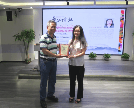 中国传统文化研究中心主任杨华教授为Li Li教授颁赠长江论坛纪念牌,轻小说