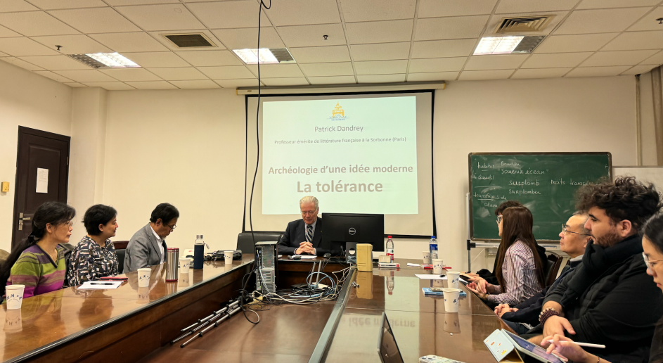 Dandrey教授带来了题为“一个现代观念的知识考古:宽容”的讲座。教授以文艺复兴时期的宗教背景为切入点,介绍了当时新创立的“福音主义”、“新教”、“加尔文宗”等教派,清晰地再现了16世纪欧洲因宗教而四分五裂的历史图景,并提到在杀戮和冲突中,针对宗教宽容的一系列敕令颁布。第二部分,Dandrey教授转向英国的宗教狂热,及在此背景下诞生的约翰·洛克的《论宽容》,该著作主张“将宗教信仰置于私人领域,将宽容视为狂热的解毒剂”。第三部分,内容聚焦到莫里哀的《伪君子》中体现的宗教狂热与宽容。紧接着,教授区分了“实践宽容”与“原则宽容”,强调“原则宽容”是一种更为真诚的尊重,秉承和而不同的眼光,而并非对于内容和行为的“容忍”。随后,教授列举了众多17世纪法国文学作品中对于对话、社交中“宽容”的思考,体现出当时法国社会风俗文化中对“包容”、“灵活”等价值观的重视。讲座在最后回到了莫里哀的作品《愤世嫉俗者》,用菲兰特——这个在两个冲突人物中起到平衡作用的角色,来阐释莫里哀想要通过其作品预示的以“宽容”为原则的道德观。