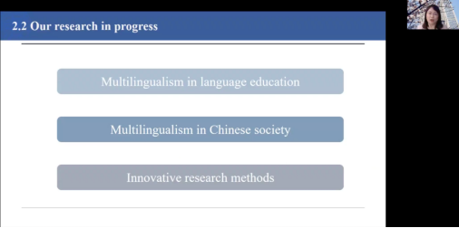 师生开展线上讲座,主题是“中国的多语研究:回顾与展望”。该讲座由外语学院英文系李丹丽老师主持,外语学院程向莉副院长、英文系邓鹂鸣教授和刘庆荣老师、大学英语教学部张明尧主任等多名教师和研究生在线下与线上同步观看讲座,线上吸引了来自国内多所高校的300余名听众参与交流。