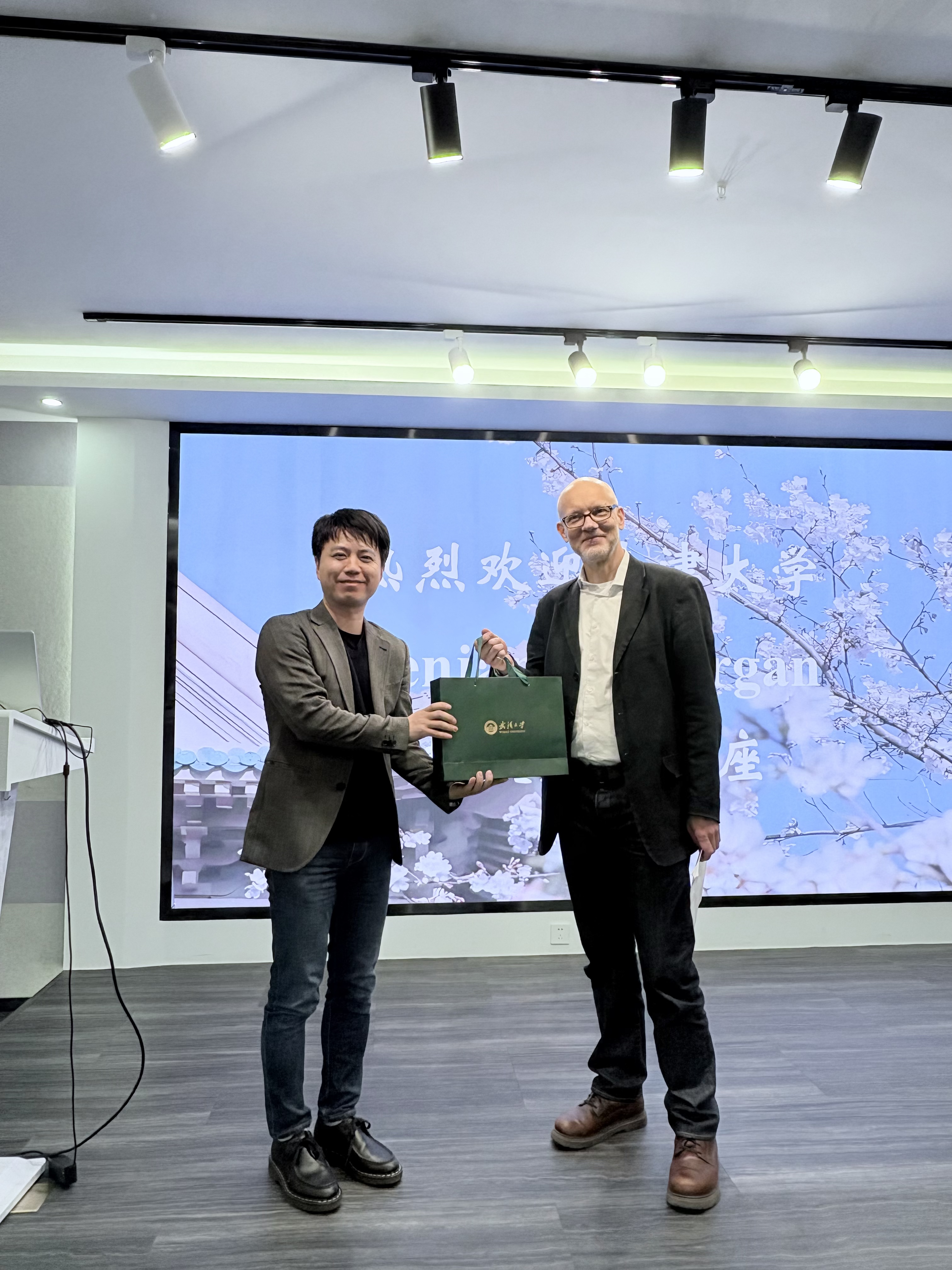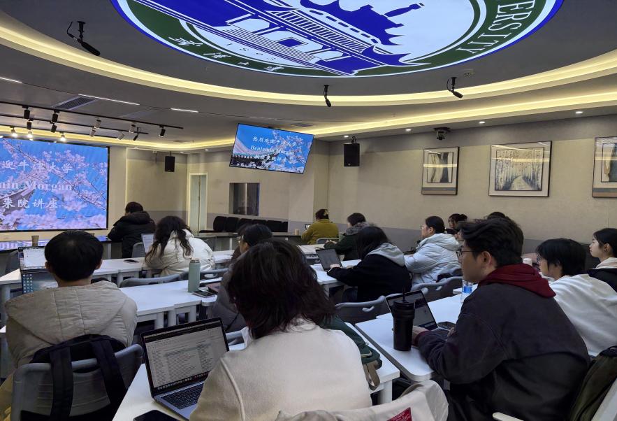本科生、硕博研究生共同聆听了讲座。讲座前,院长李圣杰教授代表学院向Morgan教授赠送纪念品。