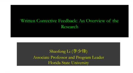 11月18日上午,美国佛罗里达州立大学二语与外语教育专业副教授、博士生导师、专业负责人李少峰教授应邀为外语学院师生开展线上讲座,主题是“Written Corrective Feedback: An overview of the research”(书面纠正性反馈研究概览)。该讲座由外语学院英文系李丹丽老师主持,外语学院程向莉副院长、邓鹂鸣教授等多名教师和研究生在线上观看讲座,吸引了来自国内外多所高校的两百余名听众参与线上交流。