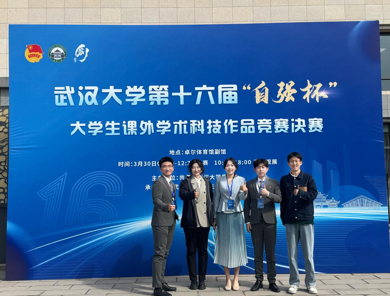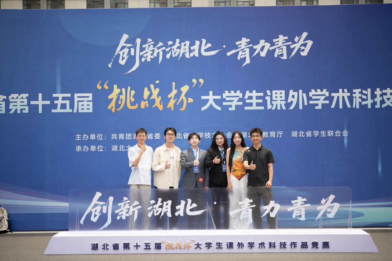 (图为团队成员在省级决赛现场湖北大学合影留念)