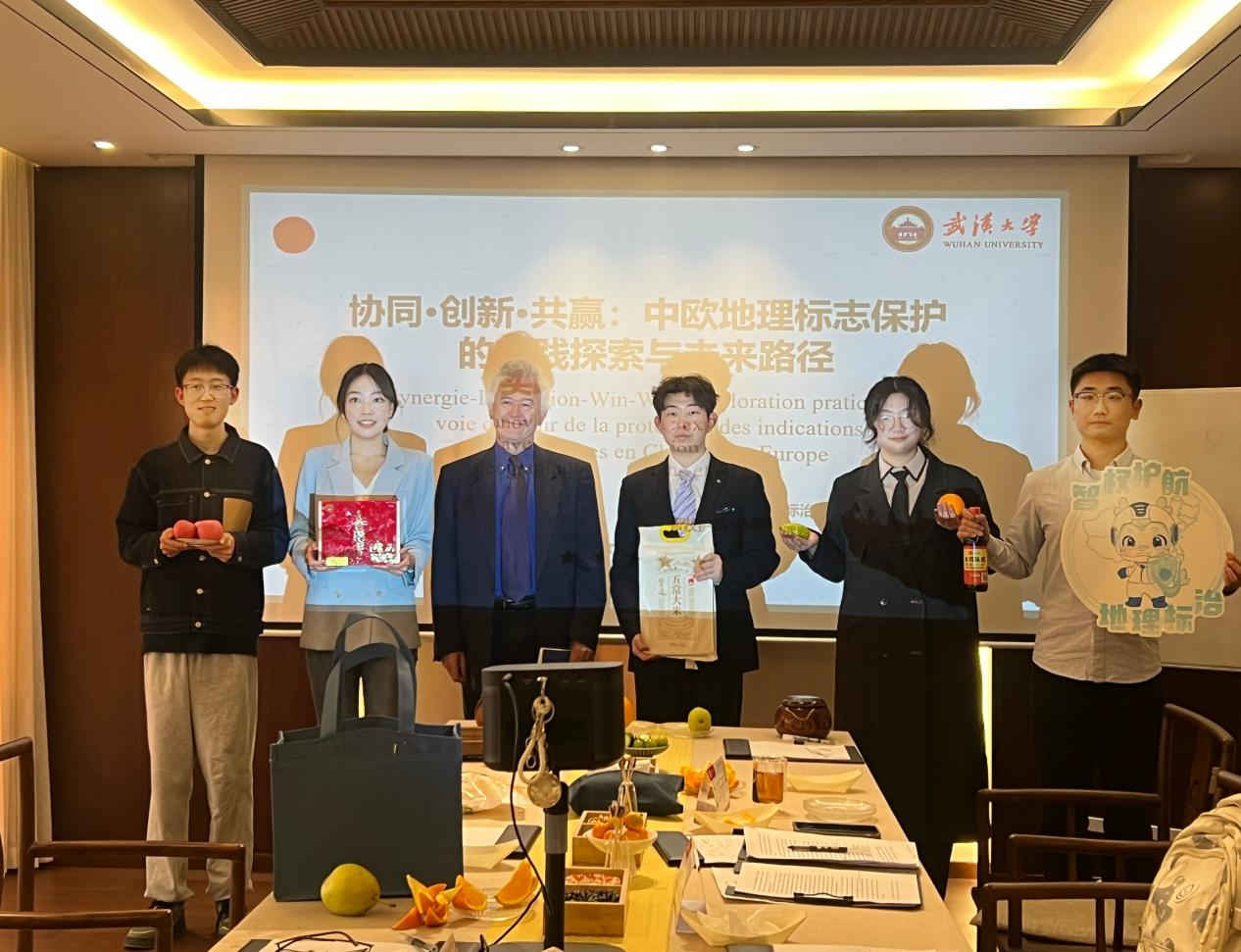 (图为团队成员与欧洲议会议员,地理标志保护专家埃尔维·朱文先生请教交流)