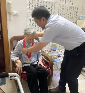 会后,院党委书记黄宏发和党委副书记孙燕带队上门看望老党员,为老同志们亲自佩戴党员徽章,颁发“光荣在党50年”纪念章。