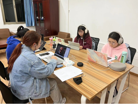 2023年3月5日,口译队五位成员喻静逸,黄晶晶,石悦,吕成乐,施钰雯报名了这次项目。3月6日,五位同学开始进行译前准备,提前熟悉老师的课件和相关术语等。本次同传持续两个小时,由五位同学接力进行。以石悦,喻静逸,黄晶晶,吕成乐,施钰雯五位队员按顺序接力,每人进行了15至30分钟左右的同传翻译。3月10日,在队长黄雨彤同学的帮助下,基于充分的译前准备,五位同学进行了较好的实战配合,使得该项目的第一次线上同传的获得成功。