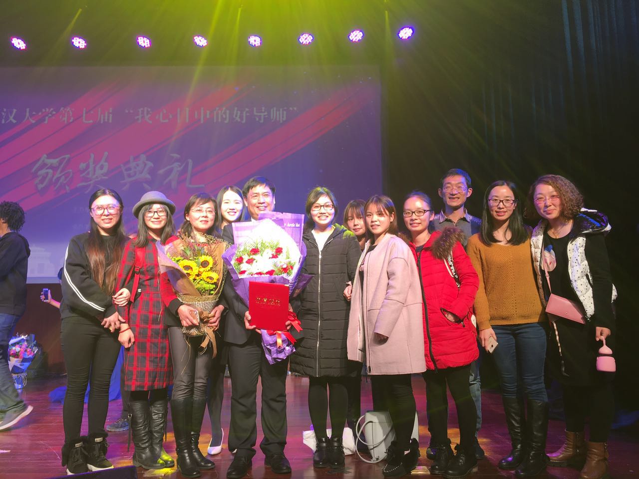 研究生们充分发挥外院语言优势,用五国语言纷纷向老师表达了感激之情,以精彩纷呈的串烧节目向老师庆贺。颁奖礼最后,窦贤康校长致辞,首先表达了对武大的印象之深和对武大学子多才多艺,文武双全的赞赏,并对评选活动中各位老师和同学之间的感情深有体会,讲述了自己作为一位老师的切身感受,从教学治学态度上和与同学的沟通交流中都真挚地阐述了作为教育者的体会和经验。其次还强调了尊师重教、立德育人的重要性,教师应当秉承谦虚严谨治学的态度,严格要求自己。最后校长也对学生培养和学校建设表达了坚定的信心,将武大建设成具有中国特色、世界一流大学的展望。
