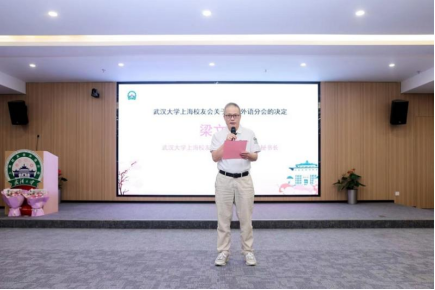上海校友会常务副理事长兼秘书长梁文忠宣读《武汉大学上海校友会关于同意成立外语分会的决定》,宣布由1996级英语专业校友曾桂娥任分会会长。梁秘书长希望外语分会能为武大校友们提供共同学习、经验分享、职业发展和国际合作的广阔舞台,同时促进母校外语学院与在沪外语院系校友之间的紧密联系。