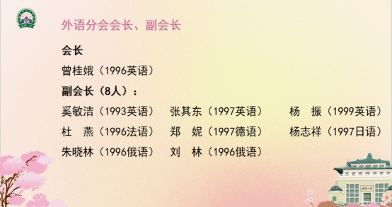 大会审议通过了外语分会的章程、顾问、理事会及秘书处成员名单。