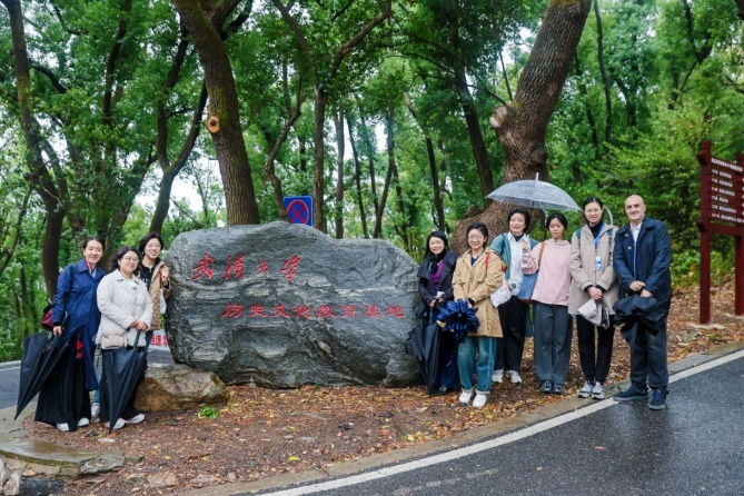 17日上午,参会老师在武大西语系师生的引导下进行了校园导览,大家深入感受武汉大学的历史与文化氛围。嘉宾们从外国语学院出发,沿着枫园一路拾阶而上,登临珞珈山,参观了承载着红色记忆的“周恩来故居”。随后,途经行政楼和“九一二”操场,导览的终点是武大标志性建筑——樱花城堡。此次导览活动让与会嘉宾深刻感受到武大独特的学术与文化魅力,为会议日程增添了一抹温馨与人文色彩,同时也促进了彼此间更深层次的交流与互动。