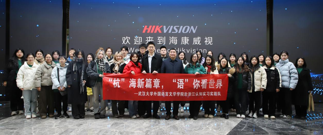 杭州海康威视数字技术股份有限公司热情接待实践队,海康威视招聘配置部总经理邵雯丽、国际业务中心人力资源总监姚沛,财务中心税务专家、武汉大学外语学院2014 届日语专业研究生吴珺,法律与合规部高级法务向思思,微影传感高级人力资源经理、武汉大学哲学学院14级心理学本科生易佳妮,招聘配置部高级招聘经理廉宏爽,招聘配置部高级招聘经理吴晓松出席座谈会。会上,邵雯丽总经理、姚沛总监进一步介绍了公司未来的发展规划和人才需求。海康威视于2024年1月29日正式加入联合国全球契约组织(UNGC),致力于引领全球智能物联新未来,业务范围覆盖全国150多个国家和地区,工作语种涵盖英日法德日俄西等多个语种,对“外语+”复合型人才的需求量巨大,对于外语学院学子就业具有重要指导意义。