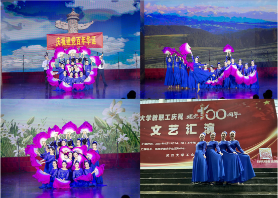 2021年6月19日,武汉大学教职工庆祝中国共产党成立100周年文艺汇演在信息学部大学生活动中心隆重举行。我院教职工积极排练,由院长马萧、党委副书记刘涛领队,选送节目《我的祖国》参赛,歌颂中国共产党的百年辉煌成就和宝贵经验,唱响爱党爱国爱社会主义的主旋律,表达对伟大的党最真挚的祝福。文艺汇演共有全校34个节目1300余名教职工参加演出。最后评选出20个优秀节目,其中一等奖3个,二等奖5个,三等奖12个。我院节目荣获三等奖。
