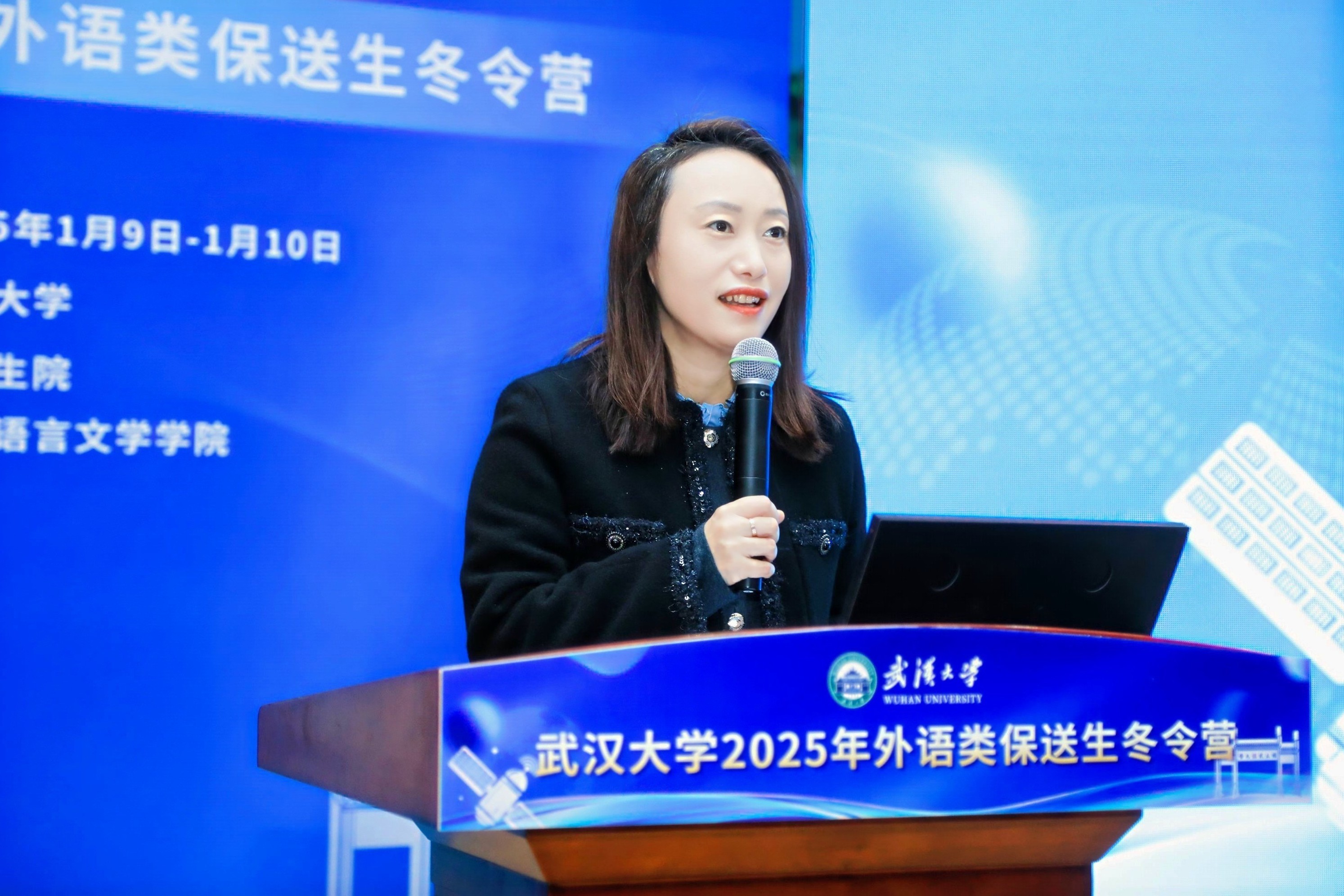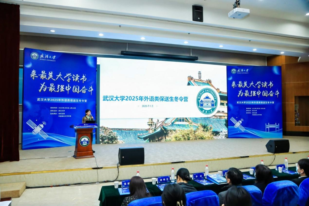 2025年1月9日,武汉大学2025年外语类保送生冬令营在外国语言文学学院一楼报告厅隆重启动。本次活动以“来最美大学读书,为最强中国奋斗”为主题,本科生院院长吴丹教授,副院长、招生工作处处长吴奕,招生工作处副处长周立超和外国语言文学学院党委书记黄宏发,院长李圣杰教授等学校、学院领导出席仪式。法学院崔晓静教授、新闻与传播学院纪莉教授、遥感信息工程学院龚龑教授,及国家网络安全学院李霏副研究员参加“外语+”特色论坛并作主题发言。外国语言文学学院部分校友、学生代表进行主题分享。来自全国16所外国语中学的学生和家长参与活动。