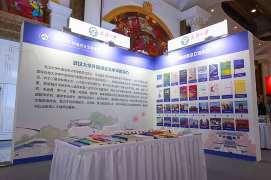 在此次翻译协会年会上, 武汉大学外国语言文学学院还承办了翻译成果展和“翻译专业学科建设与高端翻译人才队伍建设”专题交流会。成果展主要展示武汉大学外国语言文学学院中华学术外译、口译服务、外语教学与科研相关成果以及武汉大学特色文创产品。