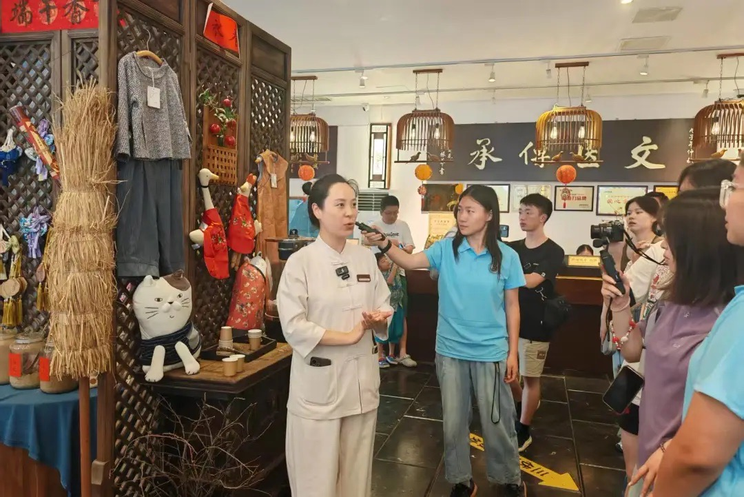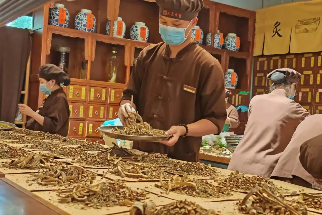 实践队走访河南华夏药材有限公司、河南青山药业和张仲景产业园,见证传统中药的现代化蜕变。华夏药材以“华夏药都”禹州为根基,构建道地药材种植、智能化生产、标准检测的全产业链体系,其DNA鉴别技术与古法炮制技艺并行,彰显“守正创新”理念。青山药业展览厅通过史料与实物展现禹州药都历史,非遗传承人朱改莲现场演示“象鼻满月刀”切制技艺,讲述“九蒸九晒”等制药古法,彰显了中医制药精神的传承与坚守。留学生们现场品尝了九蒸九晒的黑豆、地黄等中药,动手切配丹参,对中草药的制作与功效有了更为深刻的感受。张仲景产业园以中医药为核心,商业版图覆盖制药、药房、养生馆、食品加工等,是中医药市场化运营的成功代表。师生们在自动化生产线与传统工坊的匠心传承中,了解到中医药企业发展的智慧与坚守,感受中医药在今天的现代化蜕变。