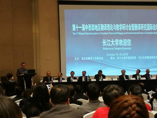 2016年10月14日至16日,由湖北省翻译工作者协会、主办,荆州市社会科学界联合会和长江大学外国语学院、长江大学翻译研究中心承办的“第十一届中西部地区翻译理论与教学研讨会暨翻译研究国际论坛”在荆州成功召开。来自全国的230余名从事翻译理论与教学研究的专家、学者齐聚一堂,共同探讨“一带一路”及“长江经济带”战略下的翻译人才培养,促进国内外翻译研究学术交流。