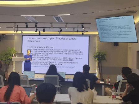 本次讲座从应用语言学对跨文化交际研究的理解,回答了语言学习和教学中的文化存在于何处?语言、身份和文化之间如何相互作用并产生影响以及跨文化交际研究如何为不平等和社会公正议程做贡献相关的三个问题。祝华教授着重指出,跨文化交际的未来方向可以向transculturality发展,了解语言、身份以及文化之间是如何相互联系和影响的。祝华教授指出英语教学中的文化转向始于19世纪90年代,现阶段语言教学中的跨文化交际,强调语言学习是一个超语和文化理解及转换的过程。跨文化性正在从将文化身份视为被给予,转化为文化身份取决于人们自身的互动,取决于参与者如何通过自我取向和他人归属的相互作用以及语言使用和身份的相互作用来形成自身的文化身份。同时,祝华教授紧跟科技前沿,,将跨文化与ChatGBT相联系,以向ChatGBT提问,表明了虽然openAI已经尽可能地在文化上中立和尊重,但它可能并不总是抓住不同文化观点的复杂性,进一步指出了如何在合理使用人工智能的基础上,进行跨文化交际。