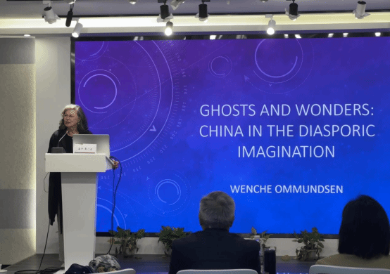 随后,奥门森教授简要介绍了流散文学和流散华人文学的相关知识(这在上次的流散文学讲座中有详细提及),并由此引出本次讲座的主题,即流散华人文学作品中的超自然元素。奥门森教授以三部涉及超自然元素的流散华人文学作品为例,向与会师生展现了其中代表中国想象的鬼魂和奇幻元素,这三部流散华人文学分别是汤亭亭(Maxine Hong Kingston)的《女勇士》(The Woman Warrior)(1976),Remy Lai的Ghost Book(2023)和匡灵秀(Rebecca F. Kuang)的The Poppy War Trilogy(2018-2020)。其中,汤亭亭的《女勇士》是这一类型中最著名和最具影响力的文本,而后两部则是近年出版的新作。奥门森教授简要介绍了三部作品的作家背景、基本内容、超自然或传奇元素、主旨和读者反响等。她指出与过去书写自体经验的流散华人作家相比,新一代年轻、自信、勇敢的流散华人作家能更好地融入他们身处的西方文化,故而借由多样化的体裁和场景创造出更丰富的流散华人文学。与此同时,奥门森教授也向与会师生发出提问,例如这些文本是否有呈现出中国形象?如果答案是肯定的,那么它们呈现出的是怎样的中国形象?而这些呈现是否可称为文化挪用或合法的文化借用?更重要的是,这些呈现是增强了跨文化理解,还是加强了文化偏见?面对这些疑问,奥门森教授表示自己也没有明确答案,因为她认为这些问题的答案取决于解读文本的角度和读者的立场。