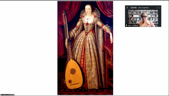 随后,Crawford教授向听众进一步分析了上述的编辑准则对于《选集》中具体文本选择所产生的影响。她以John Donne与Sir Walter Raleigh的诗歌为例,通过具体的文本解读来向听众展示《选集》收录的诗歌如何体现了斯图亚特王朝、大众文化与殖民想象在文学作品中的相互缠绕。同时,Crawford教授也对《选集》所收录的John Smith对于弗吉尼亚殖民地的记录、Pocahontas的故事、Jonson撰写的宫廷假面剧、Wroth参演的假面剧等内容进行了介绍,来强调新世界叙事对于早期现代英国文学的重要性。值得一提的是,Crawford教授为其所述主题搭配了丰富的配图,重点展示了重要女性角色的肖像画,对于听众了解她们的影响力、了解英国历史和文化具有重要价值。