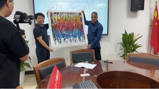 在讲座的最后,通过JONONE的艺术实践经历,外语学院师生更深入地理解了街头艺术的国际化与艺术化进程。在交流互动环节,师生共同探讨了街头艺术的变革与未来发展,谈论氛围活跃,同学们受益匪浅。会后,双方互赠了礼物作为纪念。
